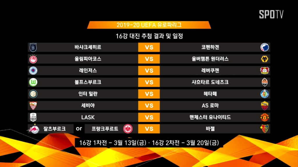 유로파리그는 26일 끝난 32강전을 통해 16강에 오른 팀들이 모두 추려졌다 유로파리그. 토트넘 디나모 자그레브 상대 유로파리그 16강 대진 추첨이 완성됐습니다.